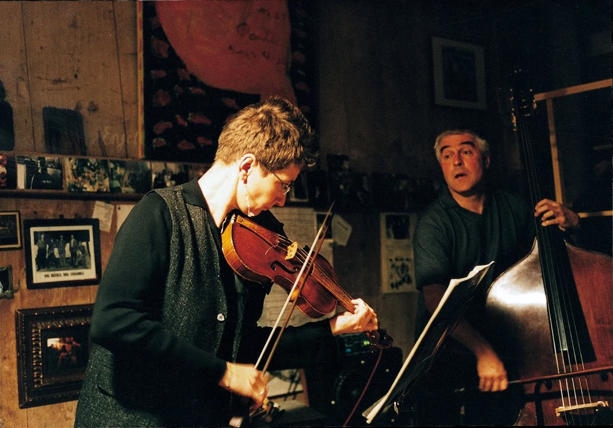 The idea to perform baroque solo works in the context of free improvised music and newly commissioned pieces sparked off the Homburger/Guy Duo and together Maya Homburger and Barry Guy have given concerts in many major Jazz, New Music and Baroque Music Festivals all over Europe and in Canada.
